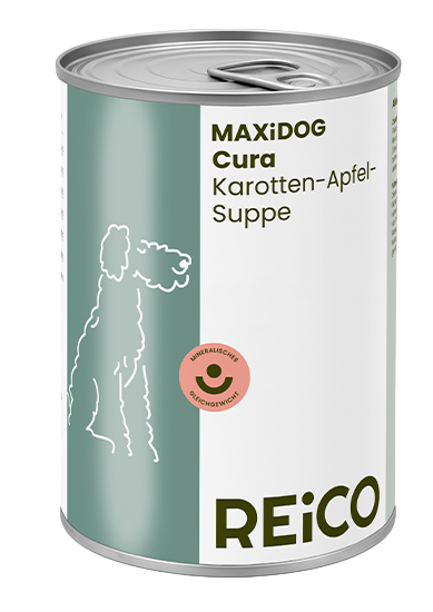 MAXiDOG Cura Karotten-Apfel-Suppe basiert auf einer traditionellen Schonkost-Rezeptur und wurde speziell entwickelt, um die Verdauung zu unterstützen und den Darm zu beruhigen. Durch die lange Kochzeit werden wertvolle Oligosaccharide freigesetzt, die eine schützende Schicht auf der Darmwand bilden und so die natürliche Verdauungsfunktion unterstützt. Die präbiotischen Inhaltsstoffe aus Apfel tragen zur Regulierung des Darmmikrobioms bei und unterstützen Magen und Darm. Zusätzlich versorgt natürliches Kristallsalz den Körper mit wichtigen Elektrolyten.